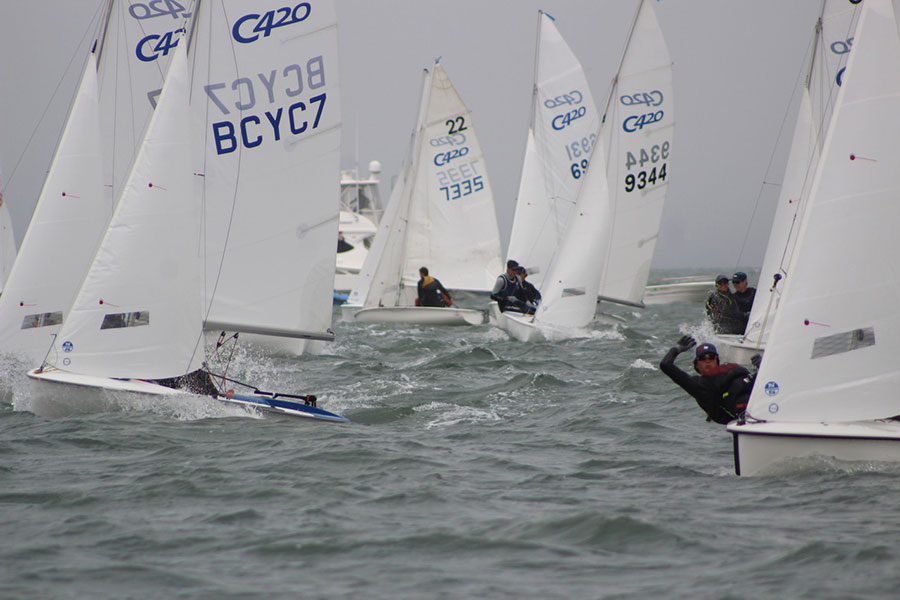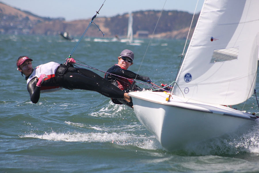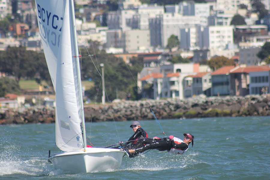 A few weeks ago, I had the opportunity to compete against 93 other boats for the North American Championship of the Club 420 class. This event was an amazing, full on, and competitive 4 day event where 186 of the best sailors in North America came together to race on San Francisco Bay in 20 knots of wind and 3 knots of current. What a combination. My crew was Newport Harbor Yacht Club’s Marbella Marlo, and we finished 12th out of 93, after a not so great last day. This event was split into two rounds, round one was 2 days of qualifying and round 2 was two days of championship racing. For qualifying, Marbella and I sailed in mixed fleets against a random selection of 46 boats, to earn a score line low enough to make the Gold fleet. We had a great qualifying run winning one race, and having several top 10 finishes and qualified into Gold in 8th place, only 12 points out of third carrying our scores from the qualifying series. We were super stoked, for a team that has had a small amount of time in the boats together, we were sailing like a well oiled machine. Unfortunately our Championship scores were not as good as our qualifying run, and we fell 4 places over the course of the last two days. We still had an incredible event, and learned so much about sailing in the bay and managing a big fleet in shift and tide controlled environments.