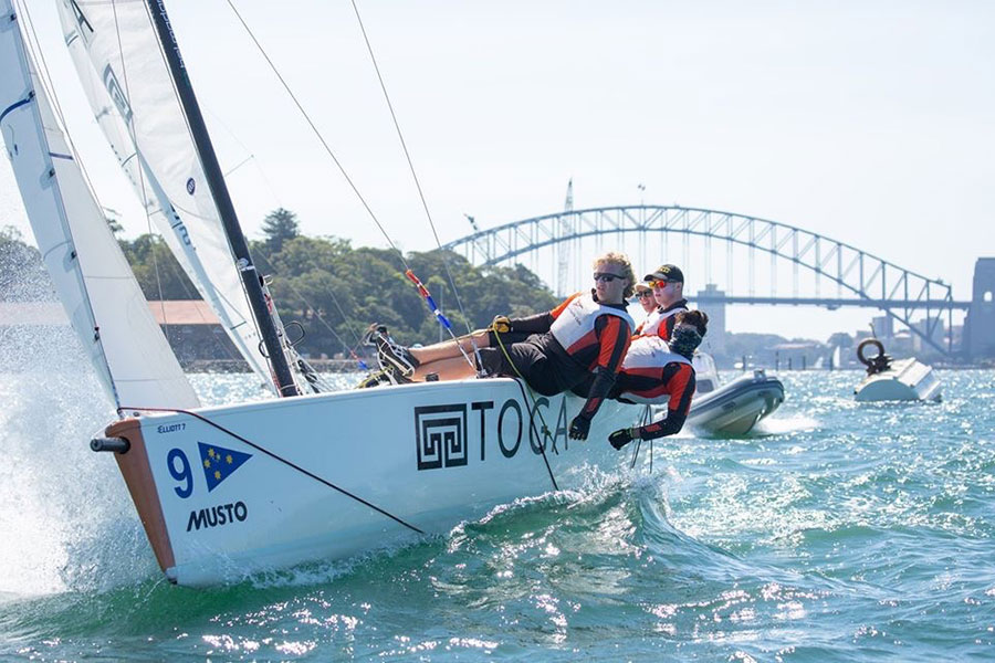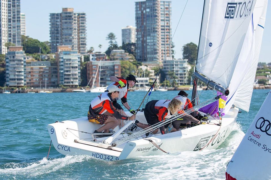 Recently this past month I had the epic opportunity to compete on Sydney Harbor in Australia, for the Cruising Yacht Club of Australia’s Musto International Youth Match Racing Championship. This event otherwise know as “The Musto” is a world renound youth match race that draws the best under 23 competitors from around the world. Better yet this regatta was designated a World Sailing grade 1 regatta, which is the highest ranking they can give to a match race regatta for its intense competition, outstanding umpires, prize money, and global diversity. It was a great event. My team of Jasper Freedman (Bow), Max Brennan (Trim), and Will Birch-Tomlinson (main), had a solid event finishing 7th after a very close semi finals against World ranked #2 Nick Egnot-Johnson. We had an interesting start to the round robin only completing 3 races on the first day due to extreme weather conditions. The second day was what we call champagne conditions, with a beautiful 18-20 knots and flat water, it was perfect sailing. Unfortunately we did not have the greatest day but, managed to go 6-5 in the round robin. This put us outside the top four and forced us to compete in the repacharge round robin for a spot in the quarter finals. Day three, was one our our best days of sailing as we went 5-2 out of the repacharge losing a close tie breaker for 6th place, but we securing our spot in the quarters. Later that day, Nick Egnot-Johnson the 1st place seed chose us to race against in the quarters. Needless to say, we were pretty pumped. It didn’t matter to us that he was the favorite going into the event or the fact that he was the second best in the world, we were just happy to race a solid competitor. Our quarter finals were an absolute dog fight with penalties all over the place, shrimped kites, collisions, and planing conditions. It was absolutely amazing. We managed to take the first race off them after he earned himself a double penalty within 30 seconds of the first gun. The second race was the closest one with several lead changes, but unfortunately Nick took the win. The final race was a bit rough for the boys and I. We had been sailing all day and were coming up on our 10th race of the day after sailing in a consistent 18 knots of breeze, we were getting a bit tired. Nick on the other hand had done two races since he did not have to sail in the repacharge, so with no surprise, he was able to outwork us and took the second win, but it was ok he still had to get to three wins to move on and would force us to finish the quarterfinals on the morning of day four, or so we thought. Day four started with complete glass conditions, there was genuinely no breeze for the first hour. This put the regatta behind schedule and forced the race committee to shortern the quarters to first to two wins, allowing nick to move on without a final race. We were devastated, we had lost our shot for the semis after a hard fought battle, but we were proud of how we sailed, we gave Nick and team a great battle that they definitely had to work for. We would like to congratulate Jordan Stevenson from the Royal New Zealand Yacht Club for a great regatta.